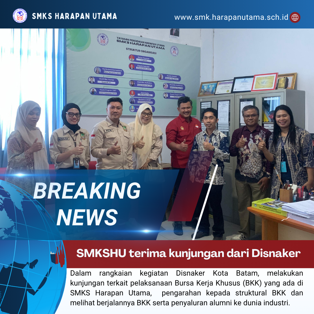 SMKSHU | Disnaker Kota Batam melakukan visitasi terkait pelaksanaan Bursa Kerja Khusus (BKK) yang ada di SMKS HArapan Utama, memberikan arahan kepada struktural BKK dan melihat sejauhmana manfaat bagi alumni dan masyarakat, perlu kita ketahui BKK adalah lembaga yang dibentuk di sekolah kejuruan (SMK), satuan pendidikan tinggi, dan lembaga pelatihan kerja untuk mempertemukan pencari kerja dengan perusahaan. Fungsinya mencakup penyediaan informasi lowongan kerja, pendaftaran pencari kerja, bimbingan karier, serta penyaluran dan penempatan tenaga kerja bagi lulusannya. BKK bertindak sebagai unit pelaksana yang membantu lulusan mendapatkan pekerjaan dan bagi perusahaan untuk merekrut tenaga kerja yang sesuai.
